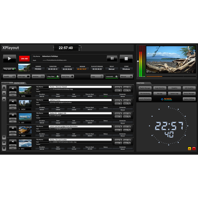 XTV Suite is a professional complete set of software tools for TV stations which manages from video capture, trimming, scheduling to playout.