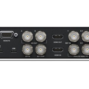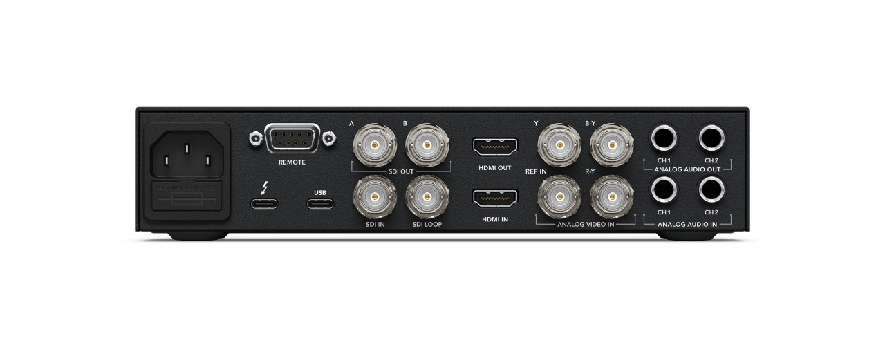 UltraStudio 4K Mini is a portable Thunderbolt 3 capture and playback solution packed with the latest broadcast technology! You get broadcast quality 8 and 10‑bit high dynamic range capture in all formats up to 4K DCI at 60p, and 12‑bit high dynamic range capture in all formats up to 4K DCI at 30p. Plus, the built in SD card reader lets you mount camera media directly on your computer so you can start editing immediately!