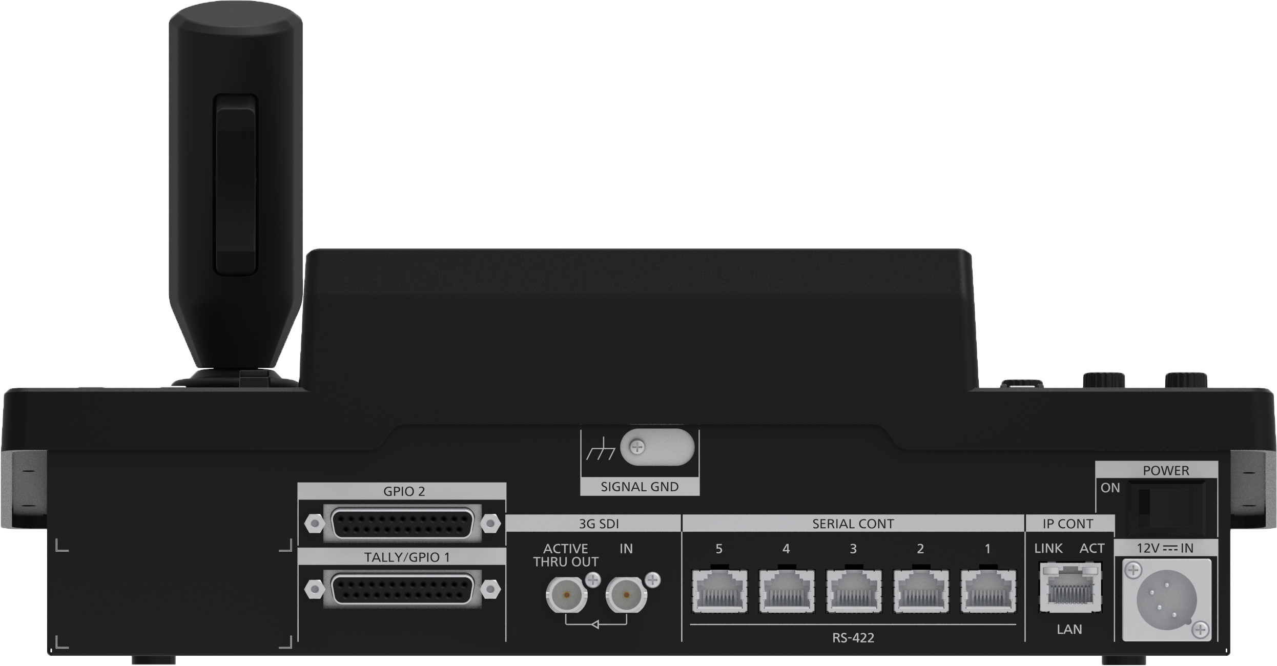 A seesaw lever mounted on the joystick manages pan and tilt operations for zoom and focus control and intuitive single-handed operation.