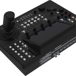 The Remote Camera Controller from Panasonic is designed for controlling the AW-UE150W, AW-HR140, AW-HE130W, AW-UE70W, AW-HE40 Series cameras. A zoom/focus rocker mounted on the joystick manages pan and tilt operations for control and intuitive single-handed operation. The built-in 7″ touch display allows for easy and quick operation of all essential camera functions.