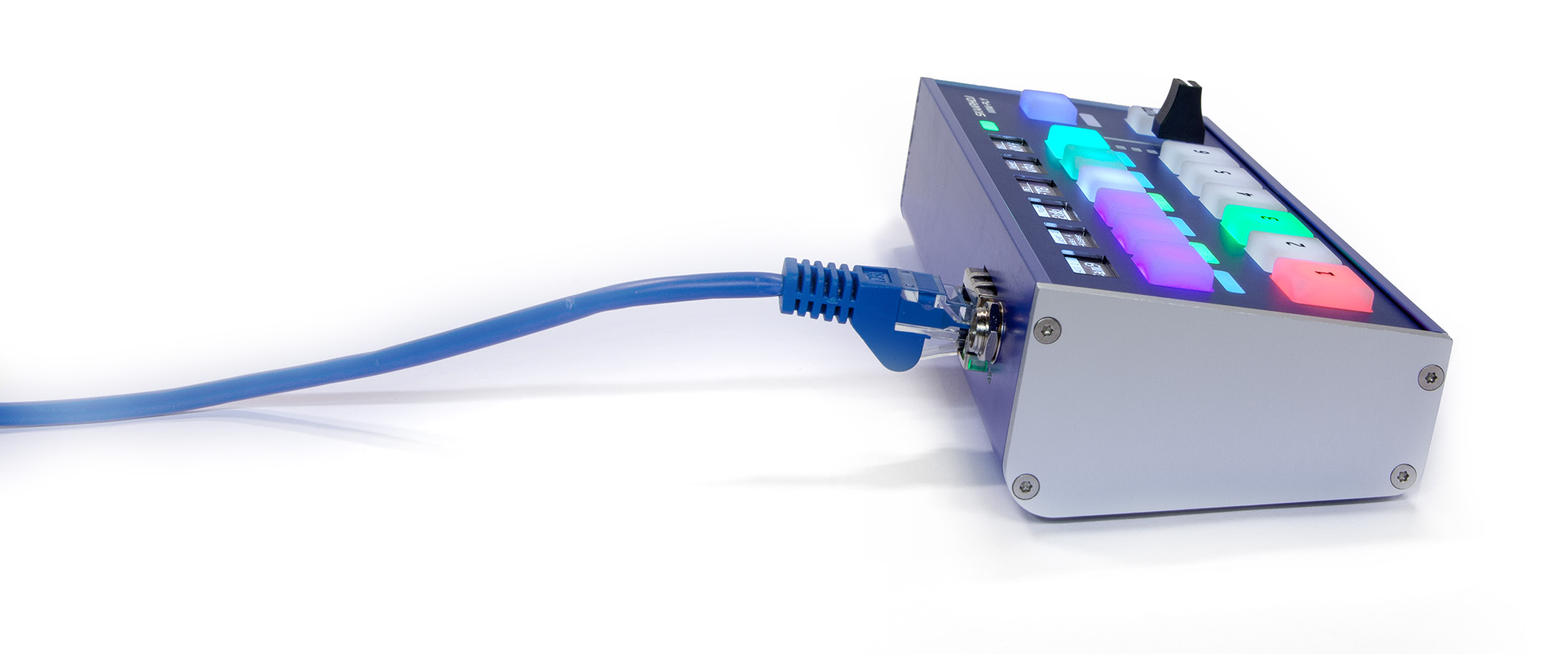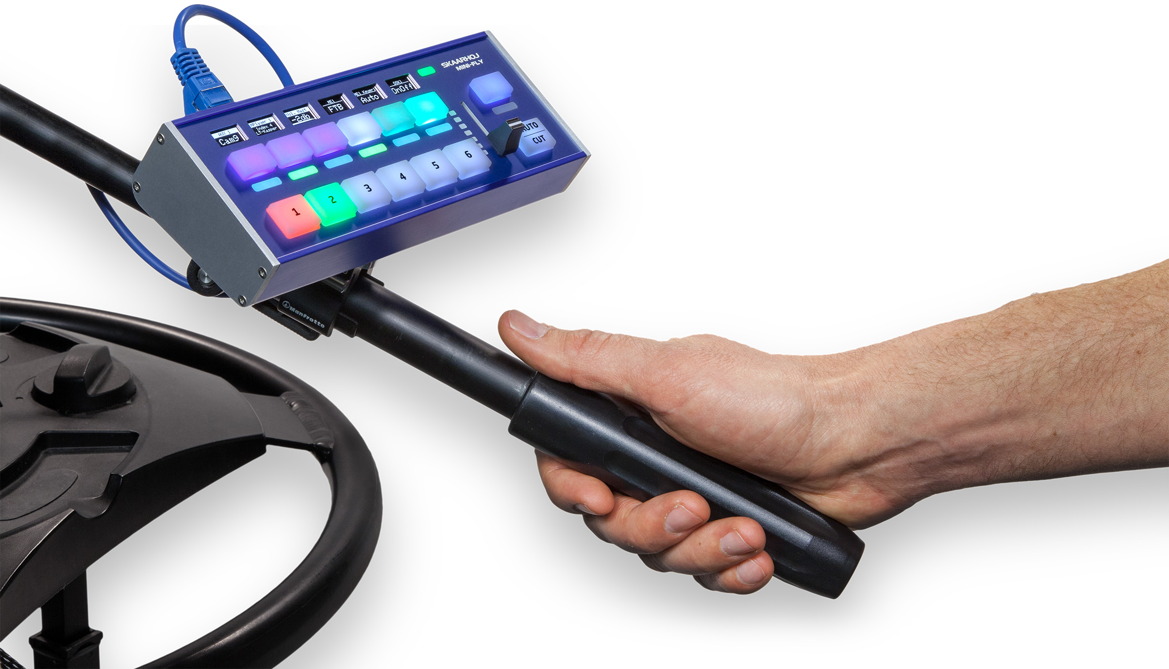 With the super compact and super flexible Mini Fly, SKAARHOJ controllers excel in live switching. It’s perfect for small live productions with six cameras, audio monitoring and transitions. And the six four-way buttons with OLED displays extend its power beyond imagination.